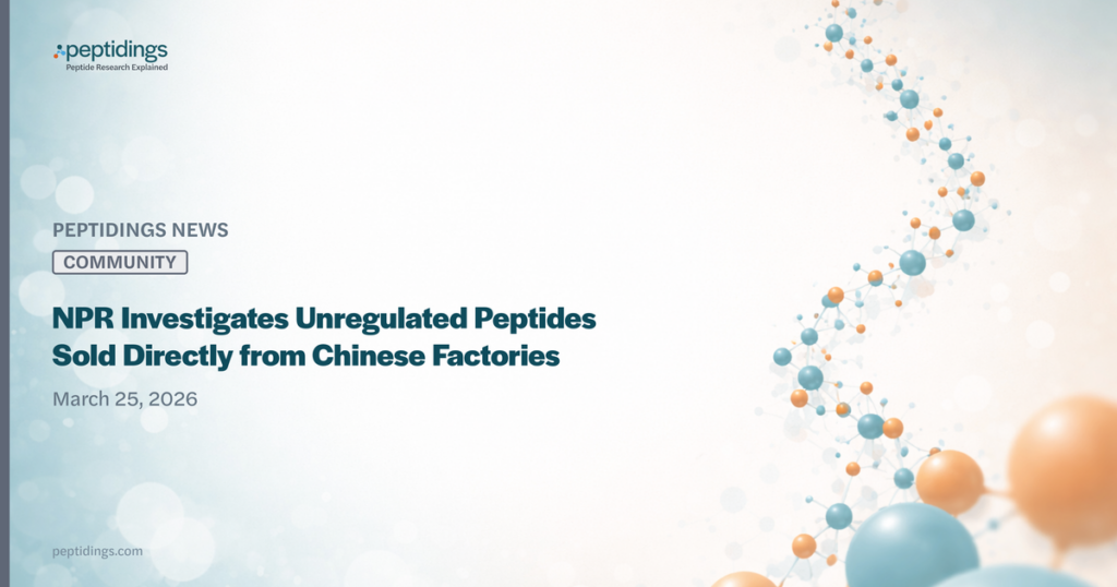 An NPR/WBUR investigation published March 24 documented the pipeline through which unregulated peptides move from Chinese manufacturing facilities to American
